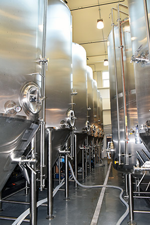 Above the canning line is a mezzanine area were brewing operations and an employee lounge are located.