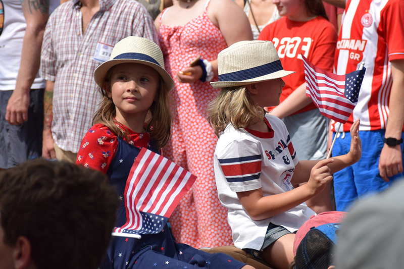 As the cannon sounded for the start of the parade, people took to the sidewalks and banks along Main Street.