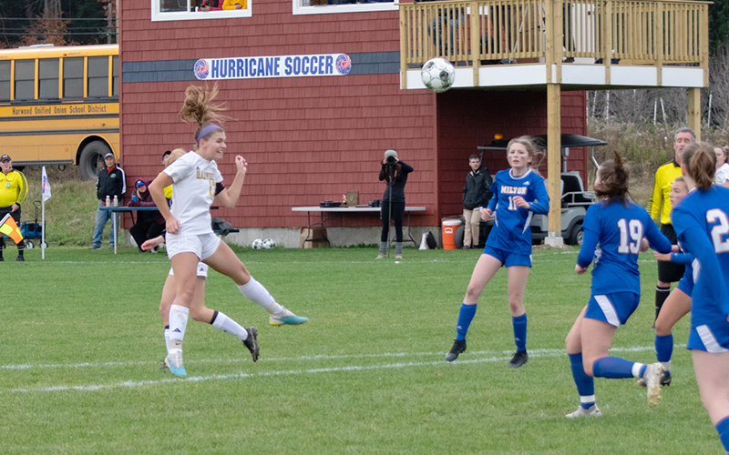 It was championship Saturday for Harwood as both the girls’ and boys’ soccer teams were playing in the D2 Vermont State Championships at the Maxfield Sports Complex in White River Junction. The first game of the day pitted the #4 seed Harwood girls against #2 Milton while the #3 Harwood boys’ team took on #9 Rice later in the day.