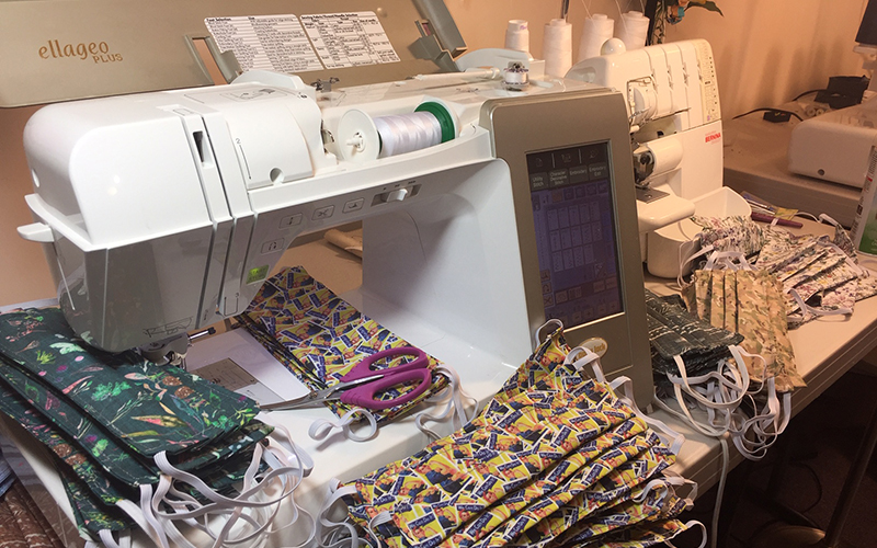As supplies come in, she’s continuing to pump out masks. She’s working production-style for efficiency. She has had some help from local seamstresses, but mostly she’s a one-man factory in her little, red cottage.